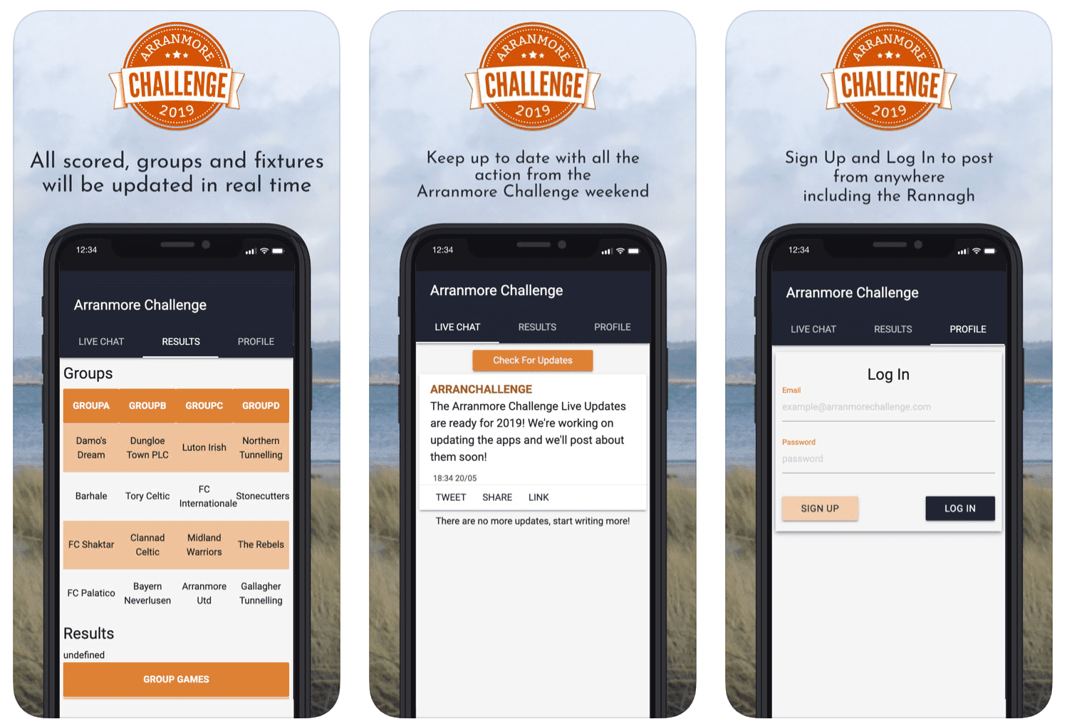 The app will give all users the ability to share updates from the Rannagh and all game results will be updated live. If you're using twitter or instagram make sure you use the hashtag #arranchallenge and following the handles, we'll aim to share the best ones.